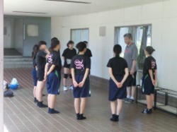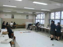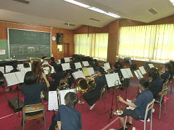 強い日差しが戻り、夏らしい気候の中、各部が活動します。作品の構想を相談したり、作品づくりに取り組む美術部、合奏前の各自の練習に取り組む吹奏楽部、練習を終えても、凛とした姿でミーティングに臨むバレーボール部の生徒たちです。