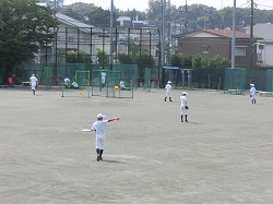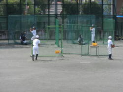 互いに声をかけ、手際よく交代しながら、バッティング練習に取り組みます。