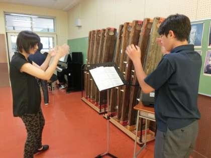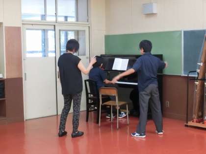 10/19(土)に行われる学芸発表会〜舞台の部・合唱コンクール〜に向けて、各学年・各クラスの課題曲・自由曲が夏休みに入る前に決定しました。そして夏休みに入るやいなや、指揮者・伴奏者はその練習に取り組んでいます。指揮の仕方に始まり、クラス全員をまとめるための所作、伴奏者との息の合わせ方、はじまりとおわりのタイミング、曲のテンポなどさまざまなことを考えながら練習をしています。