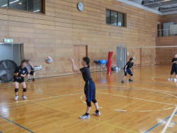 今日も朝から気温が上昇しています。午前中、安全に留意しながら意欲的に部活動に取り組む生徒たちです。練習の合間のミーティングに、練習に集中して取り組むバレーボール部です。