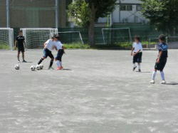 夏休み3週目を迎えました。午前中は、卓球部、サッカー部、吹奏楽部、美術部が活動しました。朝から夏の日差しいっぱいの校庭で、部活動支援員とともに活動するサッカー部です。