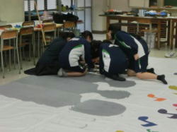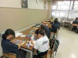 美術室では、作品の製作を美術部が行っています。個人作品と合同作品の製作に計画的に取り組みます。