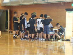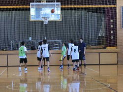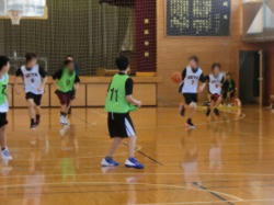 バスケットボール部は、他地区の中学校を1校お招きして練習試合を行っています。これまでの練習の成果を確かめながら試合は進みます。