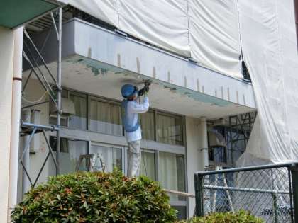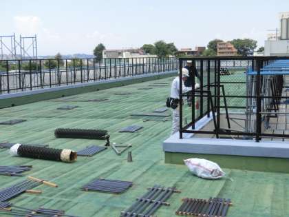 8/8(木)工事は順調に進んでいます。屋上はフェンスの取り替えに取り掛かりました。外壁塗装は玄関のひさしの塗装が始まりました。