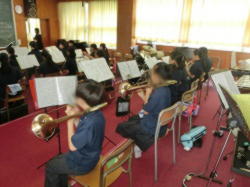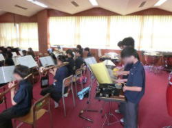 来週木曜日の区立中学校音楽発表会に向けて、音楽室で集中力を高めて練習に臨む吹奏楽部です。各パートが奏でる音が室内に響きます。本番が楽しみです。