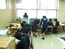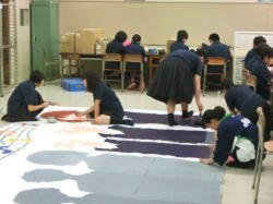 美術室で合同作品づくりや個人作品作りに取り組む美術部です。合同作品も徐々に完成に近づいていきます。図書室では、書籍を資料にして作品作りに取り組みます。