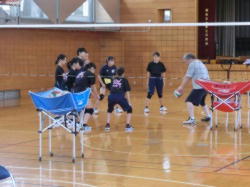 レシーブの練習に取り組む女子バレーボール部です。全員でポイントを丁寧に確認した後は、グループに分かれての練習です。お互いに助言をしながら練習にのぞみます。自ら考え工夫しながら練習する姿勢をこれからも大切にしてください。