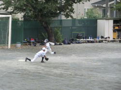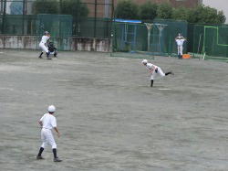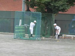 実践的な練習に取り組む野球部です。打者にあわせた守備位置、打球が飛んだ方向を考えての守備位置の移動、一塁への走塁も全力です。打順を待つ間はトスバッティングです。時間と場所を合理的に使って練習が進みます。