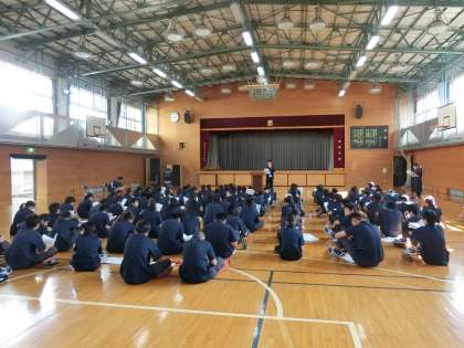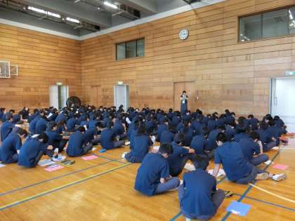 9/17(月) 6時間目に1年生と2年生は学年集会を開き、1年生は河口湖移動教室、2年生は職場体験についての最終確認を行いました。