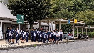 東名高速道路を順調に進み、鮎沢PAで休憩しました。普段より早い学校生活の始まりですが生徒たちは元気です。河口湖フィールドセンターに向かいます。