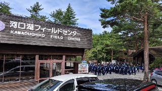 フィールドセンターに到着後、説明を聞き、ガイドウォーク、クラフト体験に分かれて行動します。