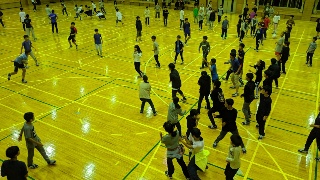 第1日目のレクリエーション最後は、学級対抗のドッジボールです。短時間ですが身体を動かし盛り上がります。この後は、就寝に向けて、1日のしめくくりを行います。