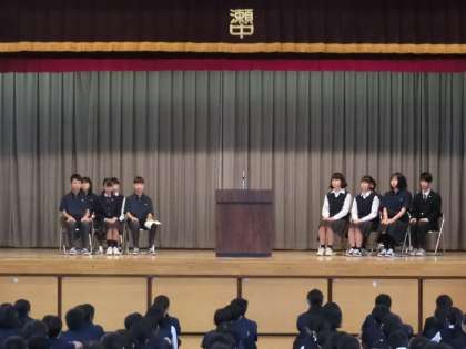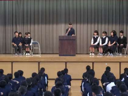 後期の生徒会活動が始まるにあたり、旧生徒会役員→新生徒会役員の引継ぎが行われました。先日の役員選挙で選出された新生徒会役員が認証され、いよいよ2年生・1年生が中心となり生徒会活動を進めていきます。