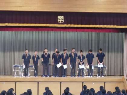 次に10/2に行われた区陸上競技大会の入賞者の表彰式を行いました。