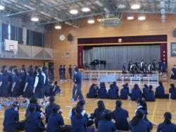 9日、5校時、合唱コンクールに向けた練習の様子です。2年生は体育館で学年練習を行いました。当日の流れを確認するとともに、課題曲を互いに披露しあいました(写真左、中)。3年生は、特別講師として著名な指揮者の方にご指導をいただきました。声楽家による授業に併せて、貴重な体験を生かして当日に向けての取組が続きます(写真右)。
