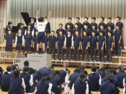 初めての合唱コンクールに向けて、一つ一つ準備を進めます。当日の一連の動作を確認しながら練習は進みます。課題曲、自由曲ともに披露しあい、これまでの取組の成果を確認しました。これヵらの取組が楽しみです。