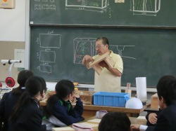 板を加工して小型の椅子を作成します。説明をよく聞き、手順に沿って木材の加工に取り組みます。のこぎりやボール盤などを操作して組み立てに必要な部品を整えます。生徒たちは、作業の約束をしっかり守り、安全に留意しながら丁寧に作業を進めます。片付け・清掃も協力して手際よく進みます。できあがりが楽しみです。