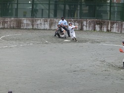 野球部が本校、校庭で2校をお招きして練習試合を行っています。
