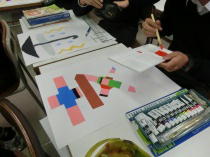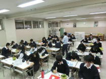 「文字のデザイン」をしています。自分で選んだ漢字から連想することをもとに、アイデアスケッチを作成し、画用紙に作品として表現します。自分の感じていることを工夫して作成にのぞむ生徒たちです。完成が楽しみです。