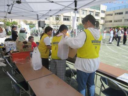 ボランティア参加者は、用具の出し入れや商品の受け渡しなど積極的に活動しました。中学生アピールリレーでは、女子バレーボール部、野球部(2チーム)、吹奏楽部の4チームが出場! 試合等があり、参加できなかった部活動もありますが、代表の4チームが瀬田中学校の部活動や学校の様子をアピールすることができました。