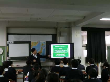11/26(火) 2年生は東京都立産業技術高等専門学校の先生による授業を受けました。『エネルギー問題とこれからの取組』というテーマで講義を行っていただきました。