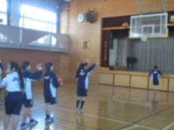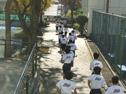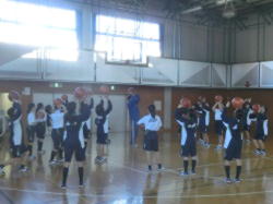 男子は、長距離とソフトボール、女子はバスケットボールに取り組んでいます。長距離走では、元気な掛け声を互いに掛けながら取り組む様子がみられました。バスケットボールは、小学校でも経験した種目ですが、中学生が使用するボールの大きさやゴールの高さに慣れながら練習が進みます。