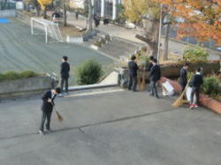 今朝、3年生が落ち葉掃きに取り組みました。手際よく、協力して通路の落ち葉を集めます。登校してくる生徒たちもさわやかな朝を迎えることができます。感謝。