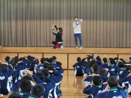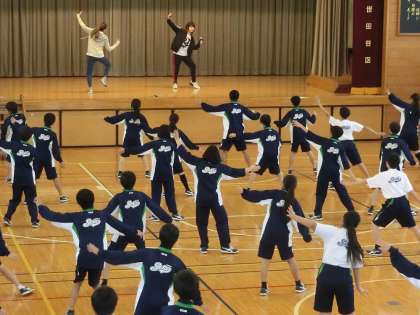 12/11(水)1年生、2年生は、エイベックス株式会社の方を講師に迎え、世田谷区の歌「おーい、せたがや」に振付したダンス「ひろがれ せたがや」の講習を受けました。