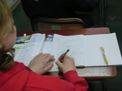 2年生は、社会、理科、保健体育、国語を受けました。社会では、上手に板書の日本語をノートに書き写していました。保健体育では準備運動を行った後、ソフトボールに取組みました。身のこなしも軽やかで、バッティングも見事でした!