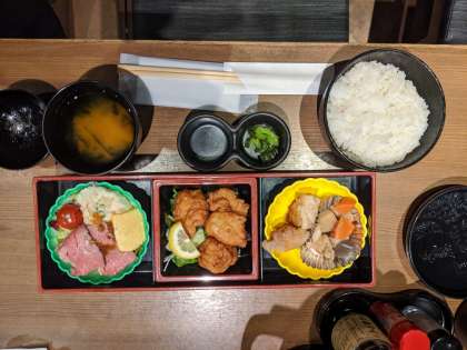 昼食が始まりました。「いただきます」とともに箸が進みます。美味しくいただきます。