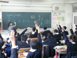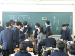 国語では、題材の宇治拾遺物語から教訓をもとに考えることに取り組みした。見ぬ世の人への手紙を通して、自分の考えを表現しました。社会では、各自が武士の政権の成立について資料や教科書をもとに調べ、まとめた結果を黒板に記し、確認しました。よく考え、積極的に取り組む生徒達です。
