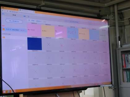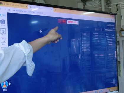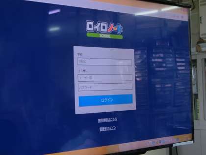 職員室にモニターを設置し、大きな画面を参考にしながら手元のタブレットで操作を行いました。
