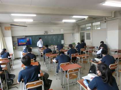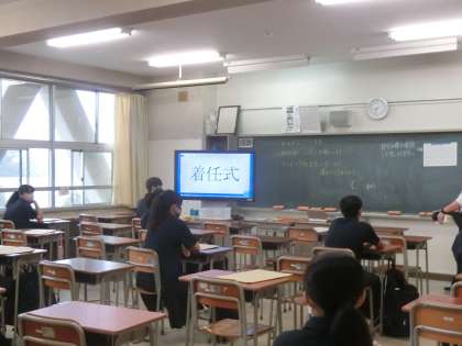 1時間目は、教室のモニターでスタジオ中継による着任式・始業式を行いました。始業式での代表生徒の言葉からは3年生らしい力強い決意が感じられました。