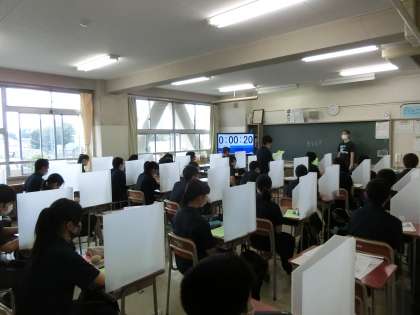生憎の雨☂となりましたが、ようやく通常授業を行なうことができるようになりました。放送朝礼の後、2・3年生の各クラスでは世田谷区から配布されたパーテーションの取り付けを行いました。(1年生は先生たちが先週取り付けました。)