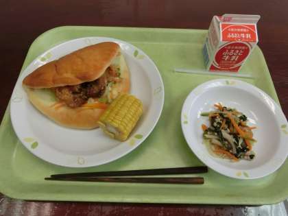 今日の給食には旬を迎えた「とうもろこし」が副菜として添えてありました。