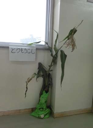 この「とうもろこし」は神奈川県湘南産です。生産者さんより実物をいただき、職員室前に展示しています。