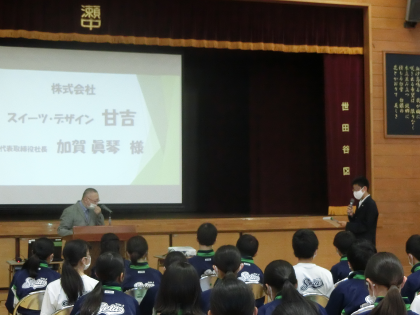 ひとりめは、瀬田でパン屋さんを営んでいる株式会社スイーツデザイン「甘吉」代表取締役 加賀眞琴様です。「与えられた仕事を一生懸命にやる!」「働くために生きているのではない。生きるために働くこともある。生きるためには遊びも楽しみも必要。」というお話が印象に残りました。そして生産者さんを大事にし、食材にこだわって美味しいパンが作られているということがわかりました。