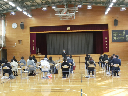 感染拡大防止対策として3密を避けるために、会場を「体育館」「格技室」「第二音楽室」の3箇所に分けて行いました。