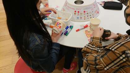 ロゴの色塗りやフリースペースに言葉や絵を描いていきます。