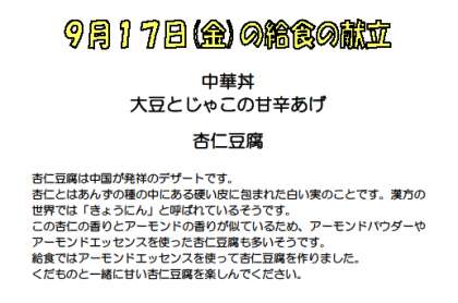 9月17日 本日の献立と産地