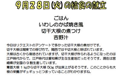 9月28日 本日の献立と産地