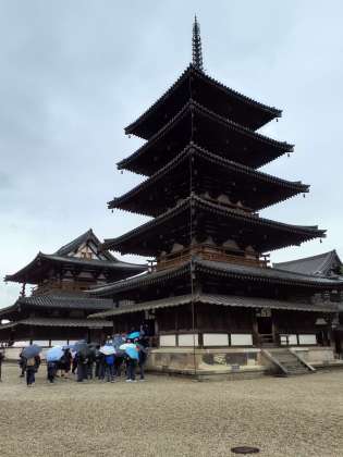 雨が弱くなってきました。法隆寺参拝、見学です。