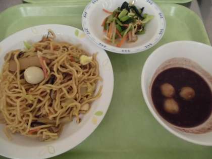 給食では、白玉もちを使ってお汁粉を作りました。