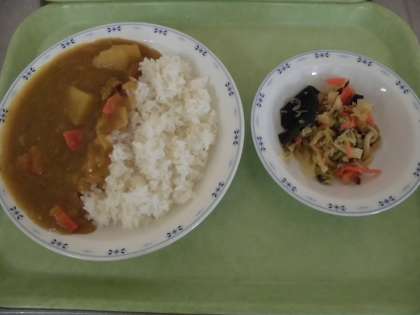 今日はリクエスト給食のアンケートでリクエストが多かったカレーです。