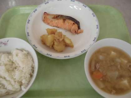 今日は鮭に生姜の風味をつけて焼きました。