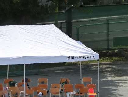 さて、瀬田小学校よりテントをたくさん貸していただきました。