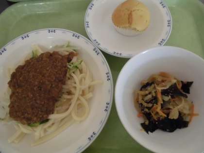 本来はおろししょうがやにんにく、酢やラー油などの調味料は自分で調整し、自分好みの味に仕上げて食べることができるそうです。給食では肉みそに加えて仕上げています。