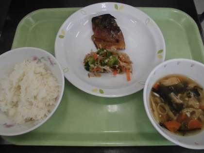 今日はすまし汁にとろみがついた吉野汁です。奈良県の吉野山がくずの産地であることから、すまし汁にくず粉でとろみをつけた汁のことを吉野汁と呼びます。現在、くず粉は貴重品となったため、片栗粉で代用することが多くなっています。給食でも片栗粉を代用品として吉野汁を作りました。