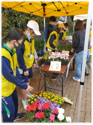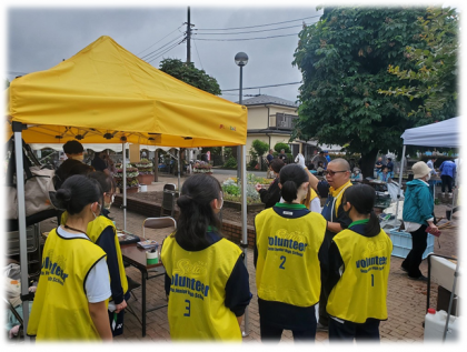 4年ぶりに開催されたフラワーランドの集いでも、ボランティアの機会をいただきました。生徒たちは、楽しみながら地域の皆様とふれあい、お手伝いをすることができました。