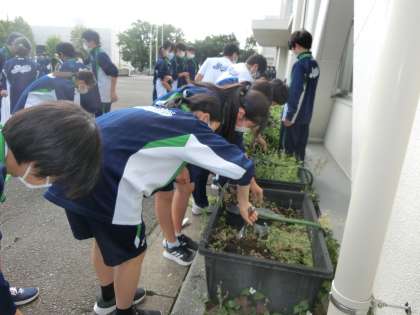 2学年では、「特別の教科 道徳」の時間を通して、はるかのひまわり絆プロジェクトに参加しています。学年でプロジェクトチームを立ち上げ、育て方から調べ、ひまわりを自分達で育てています。